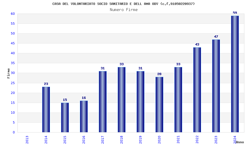 | Anno | Firme | Importi | Media | Naz. | Reg. | Prov. | Comu. |