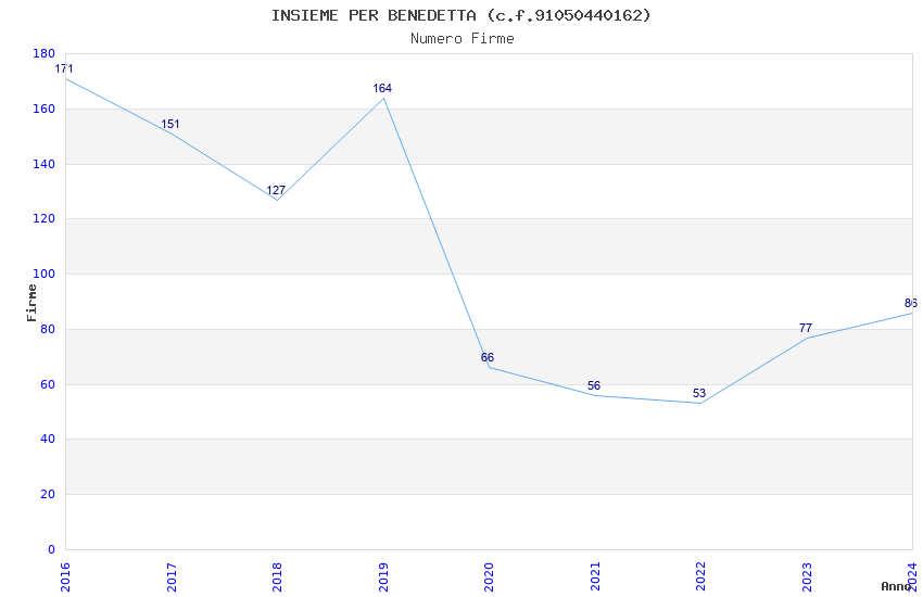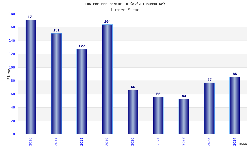 | Anno | Firme | Importi | Media | Naz. | Reg. | Prov. | Comu. |