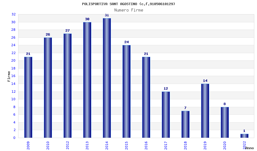 | Anno | Firme | Importi | Media | Naz. | Reg. | Prov. | Comu. |