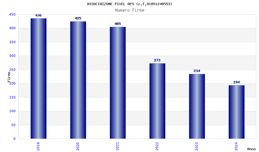 | Anno | Firme | Importi | Media | Naz. | Reg. | Prov. | Comu. |