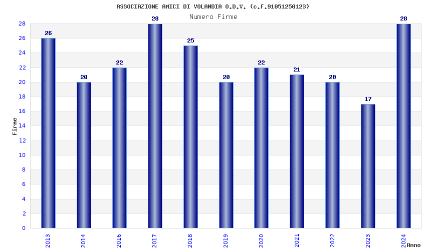 | Anno | Firme | Importi | Media | Naz. | Reg. | Prov. | Comu. |