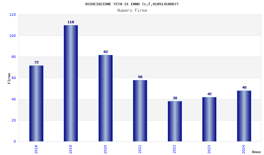 | Anno | Firme | Importi | Media | Naz. | Reg. | Prov. | Comu. |