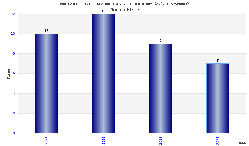 | Anno | Firme | Importi | Media | Naz. | Reg. | Prov. | Comu. |