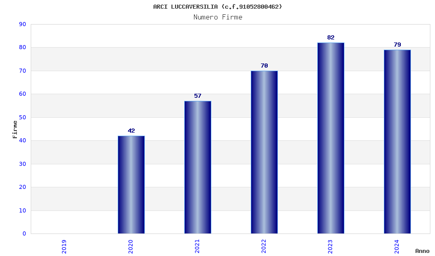 | Anno | Firme | Importi | Media | Naz. | Reg. | Prov. | Comu. |