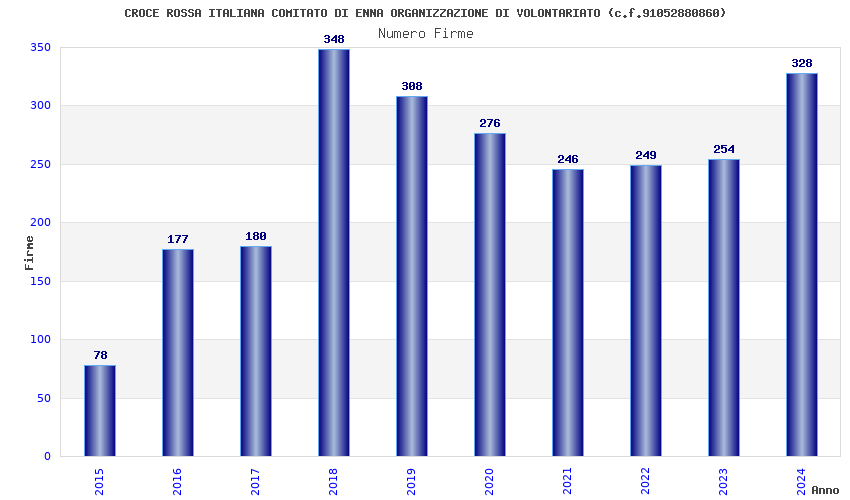 | Anno | Firme | Importi | Media | Naz. | Reg. | Prov. | Comu. |