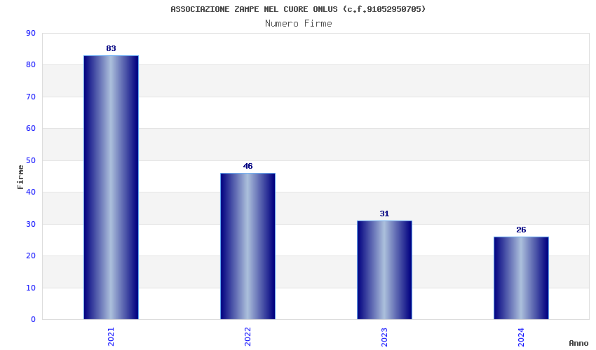 | Anno | Firme | Importi | Media | Naz. | Reg. | Prov. | Comu. |