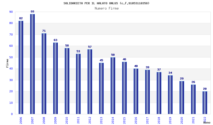 | Anno | Firme | Importi | Media | Naz. | Reg. | Prov. | Comu. |