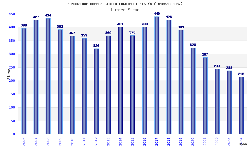 Anno Firme Importi Media Naz. Reg. Prov. Comu.