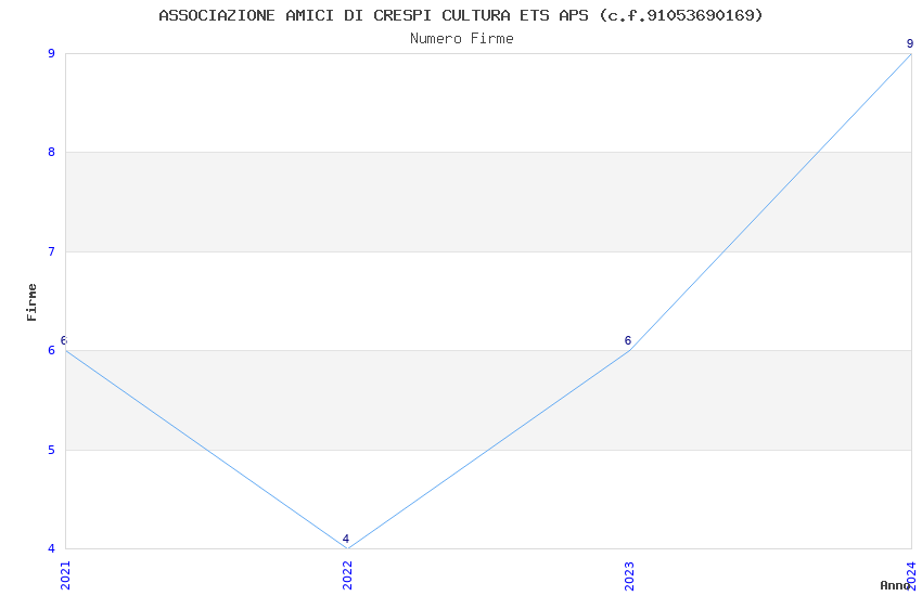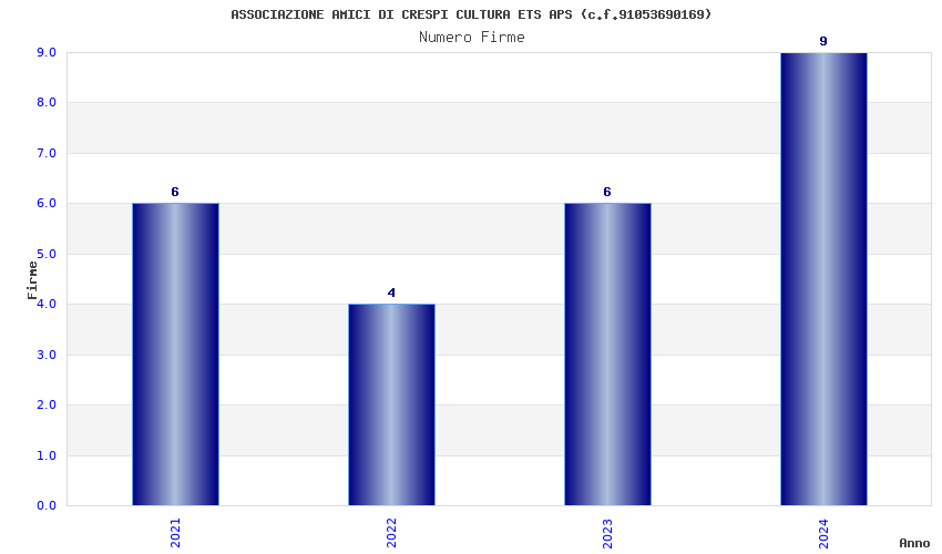 | Anno | Firme | Importi | Media | Naz. | Reg. | Prov. | Comu. |