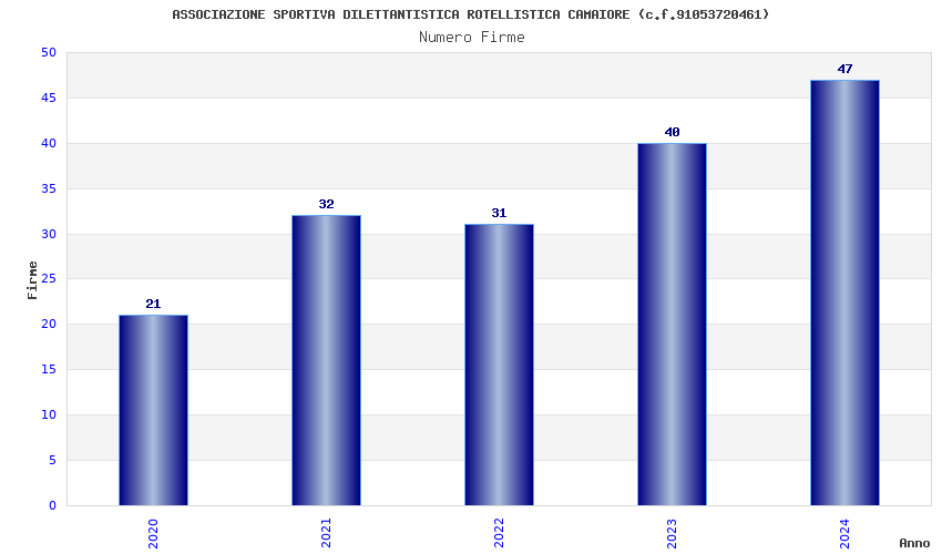 | Anno | Firme | Importi | Media | Naz. | Reg. | Prov. | Comu. |