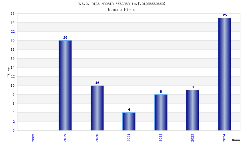 | Anno | Firme | Importi | Media | Naz. | Reg. | Prov. | Comu. |