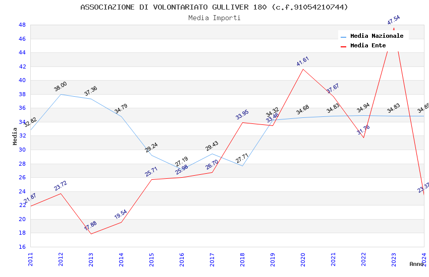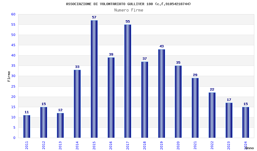 | Anno | Firme | Importi | Media | Naz. | Reg. | Prov. | Comu. |