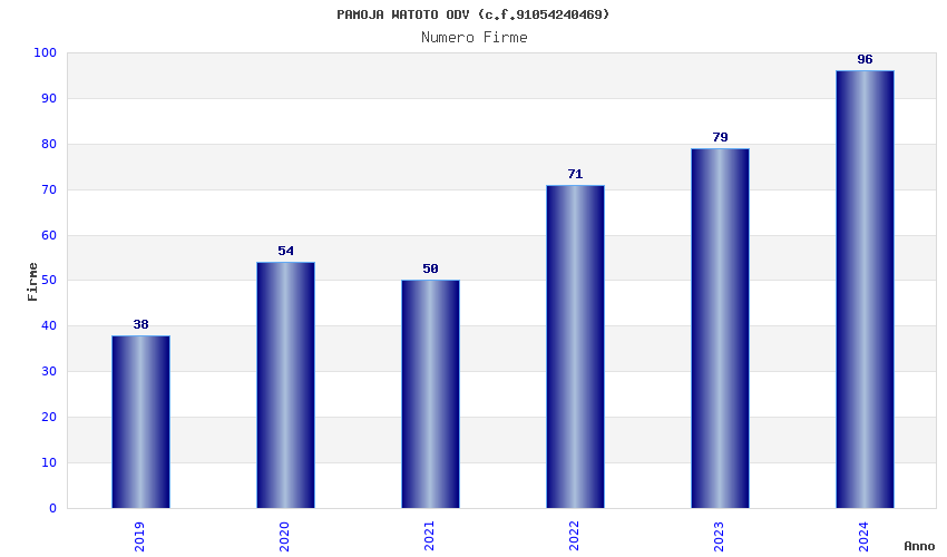 | Anno | Firme | Importi | Media | Naz. | Reg. | Prov. | Comu. |