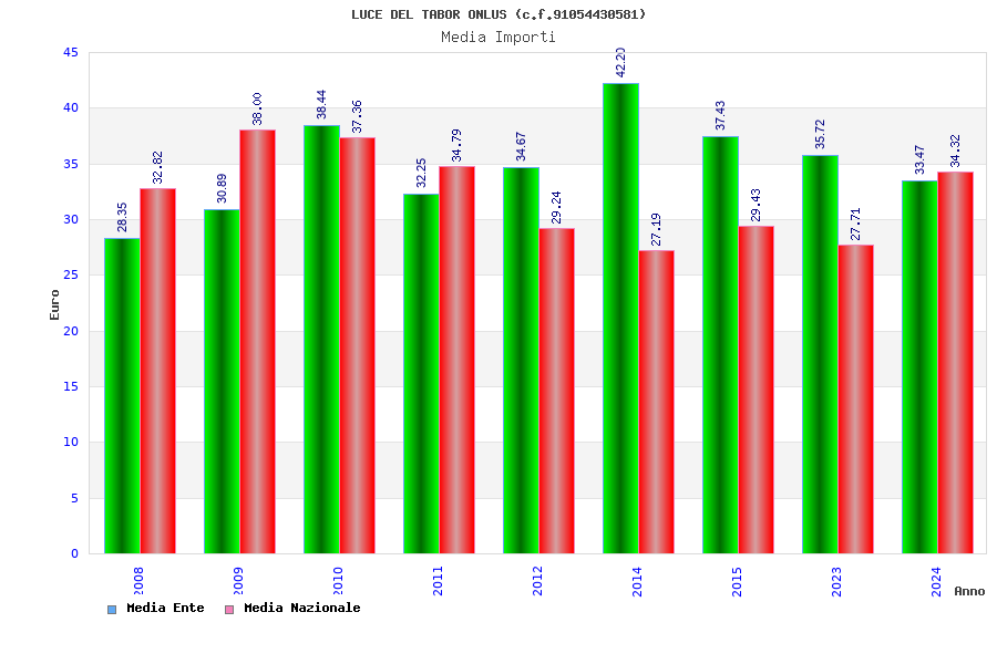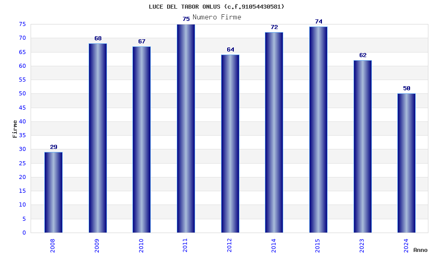 | Anno | Firme | Importi | Media | Naz. | Reg. | Prov. | Comu. |