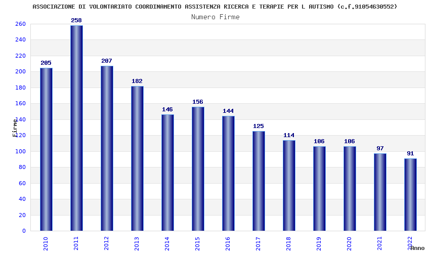 | Anno | Firme | Importi | Media | Naz. | Reg. | Prov. | Comu. |