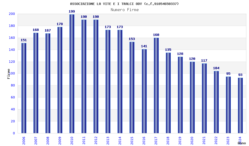 | Anno | Firme | Importi | Media | Naz. | Reg. | Prov. | Comu. |