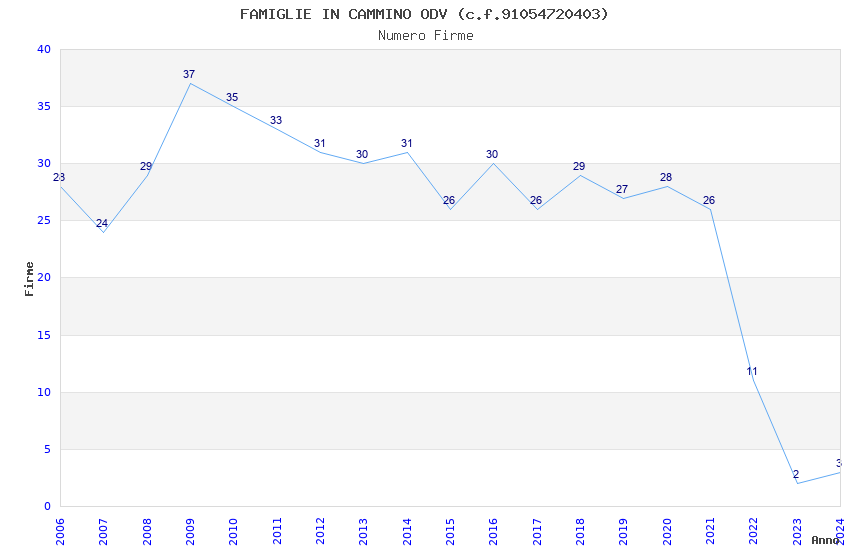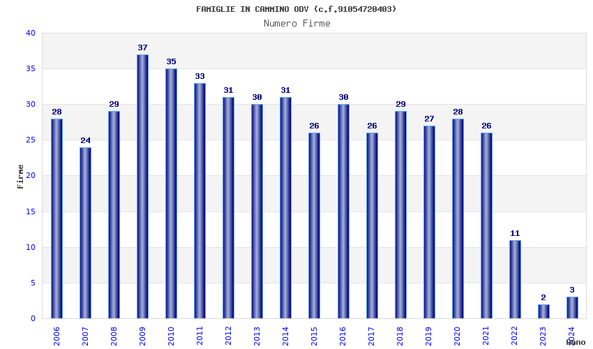 | Anno | Firme | Importi | Media | Naz. | Reg. | Prov. | Comu. |