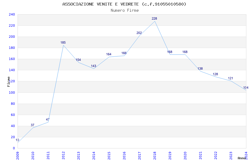| 2024 | 104 | 3.191,88 | 30,69 | 16.477 | 1.780 | 1.511 | 5 |