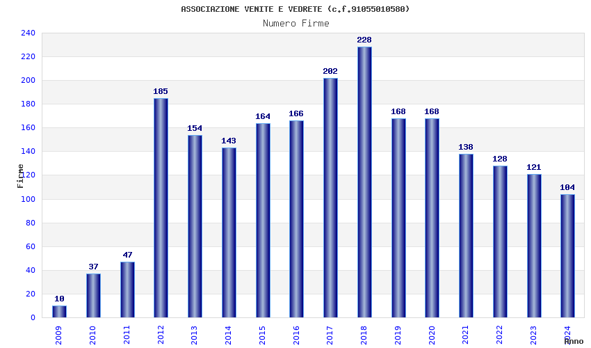 | Anno | Firme | Importi | Media | Naz. | Reg. | Prov. | Comu. |