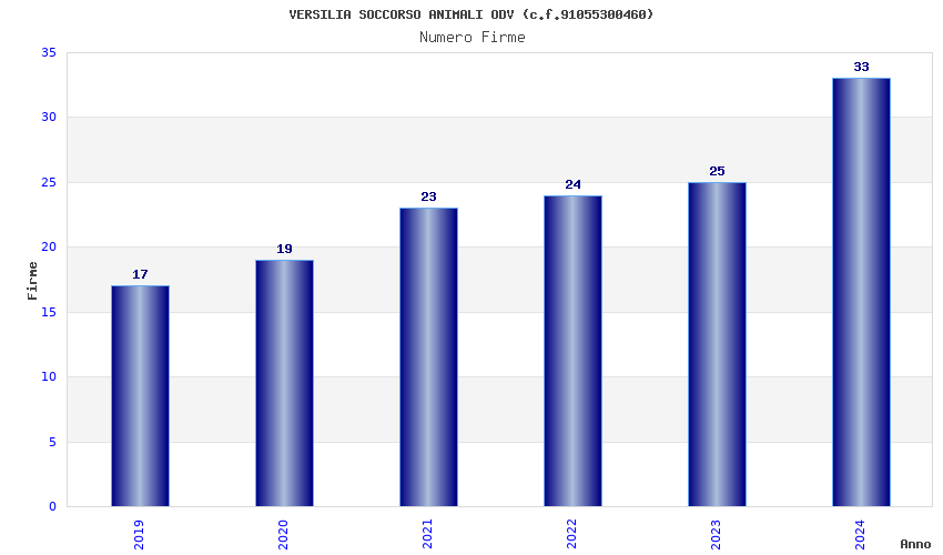 | Anno | Firme | Importi | Media | Naz. | Reg. | Prov. | Comu. |