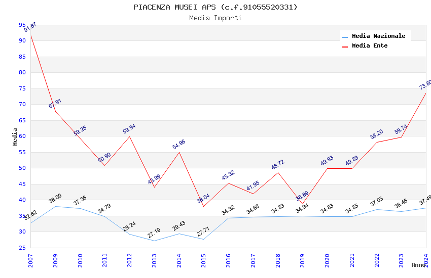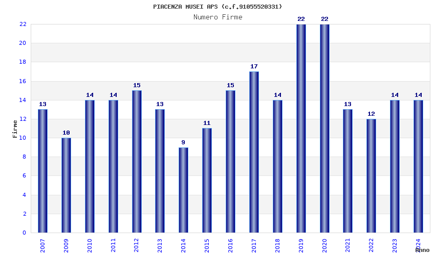 | Anno | Firme | Importi | Media | Naz. | Reg. | Prov. | Comu. |