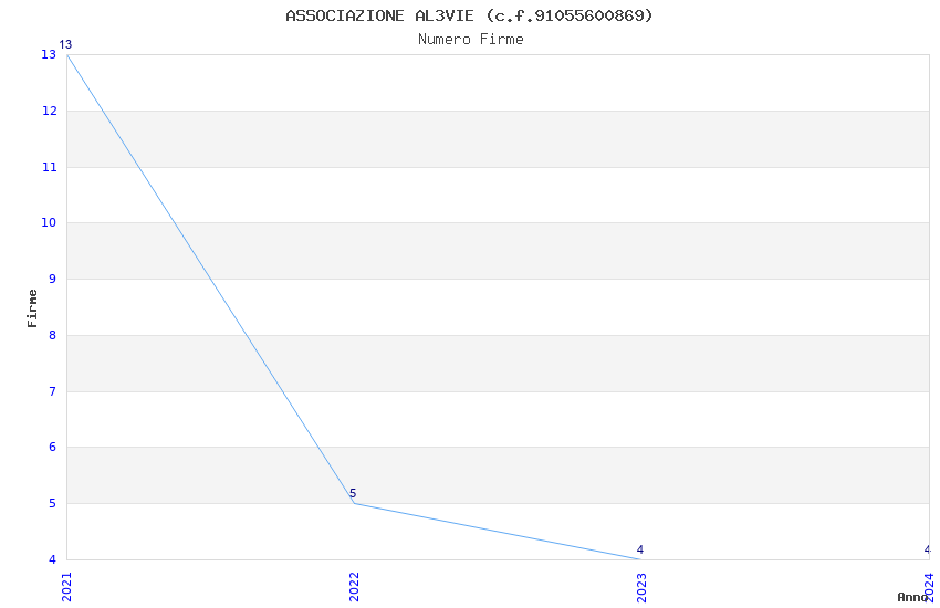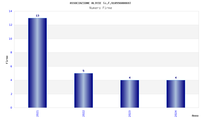 | Anno | Firme | Importi | Media | Naz. | Reg. | Prov. | Comu. |