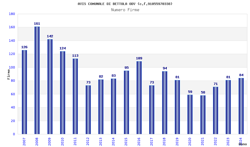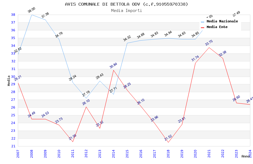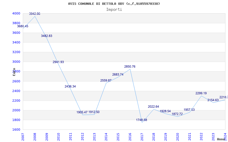 | Anno | Firme | Importi | Media | Naz. | Reg. | Prov. | Comu. |