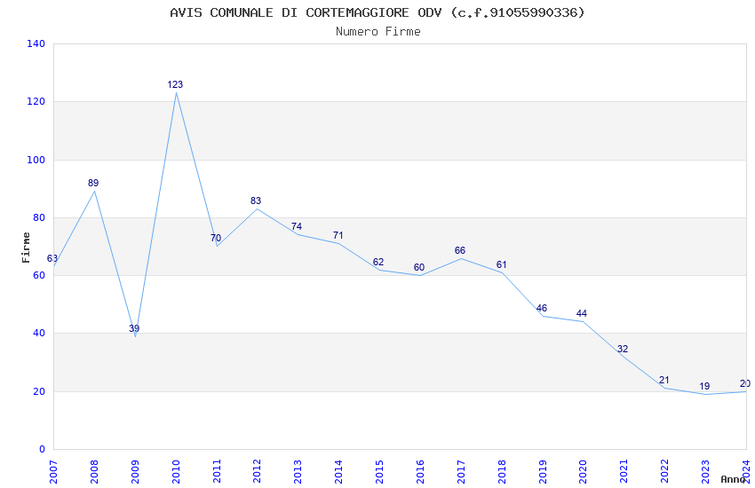 | 2019 | 46 | 1.151,77 | 25,04 | 33.173 | 2.956 | 214 | 4 |