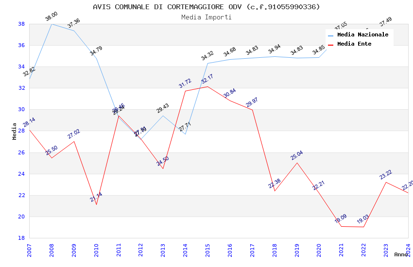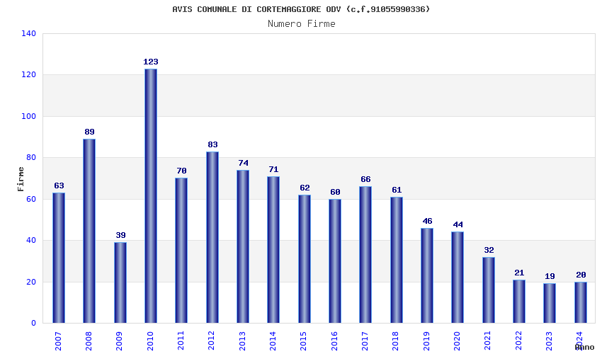 | Anno | Firme | Importi | Media | Naz. | Reg. | Prov. | Comu. |