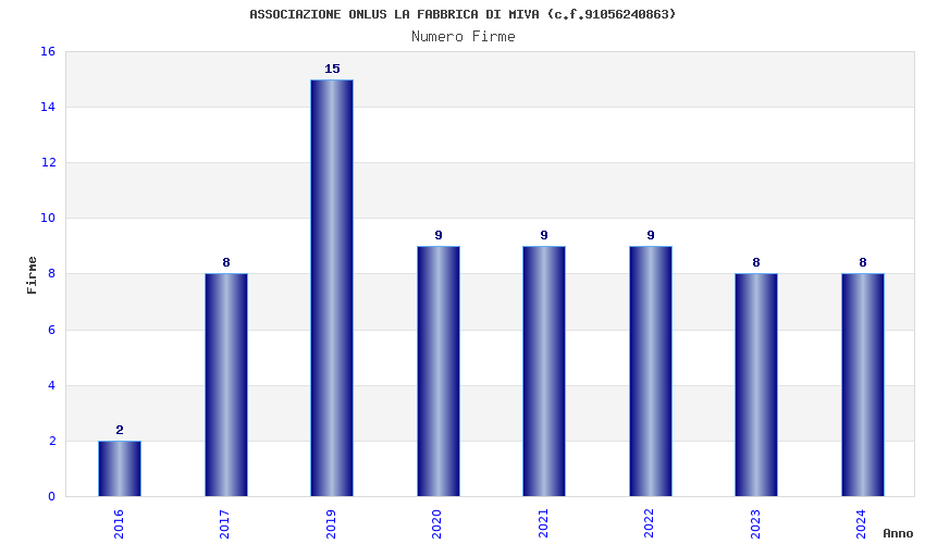 | Anno | Firme | Importi | Media | Naz. | Reg. | Prov. | Comu. |