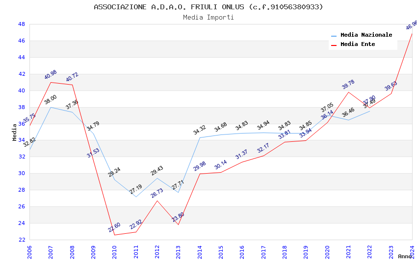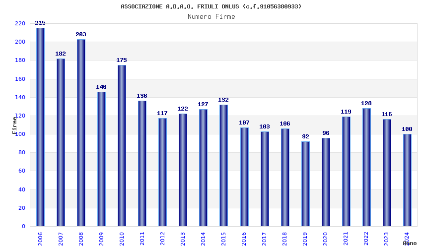 | Anno | Firme | Importi | Media | Naz. | Reg. | Prov. | Comu. |