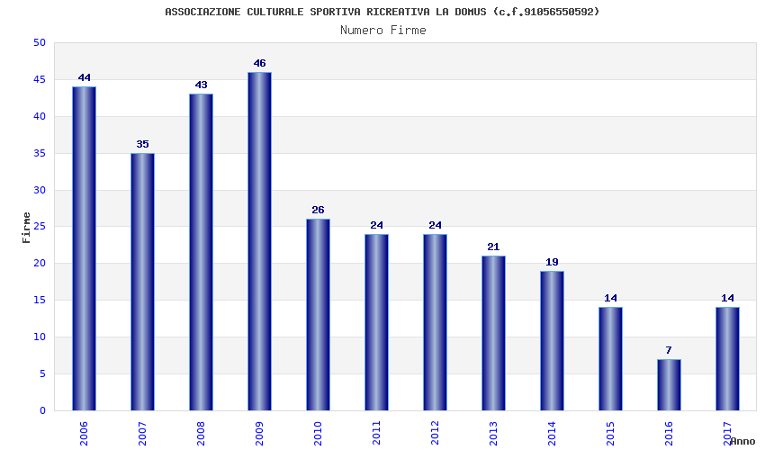 | Anno | Firme | Importi | Media | Naz. | Reg. | Prov. | Comu. |