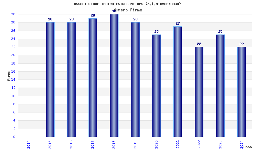 | Anno | Firme | Importi | Media | Naz. | Reg. | Prov. | Comu. |