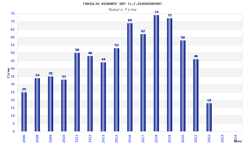 | 2018 | 74 | 2.001,05 | 27,04 | 23.675 | 2.345 | 128 | 43 |