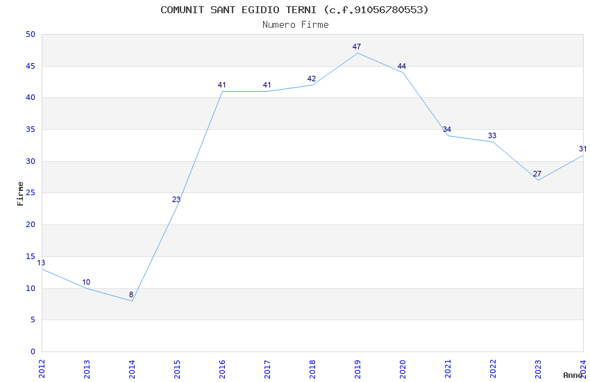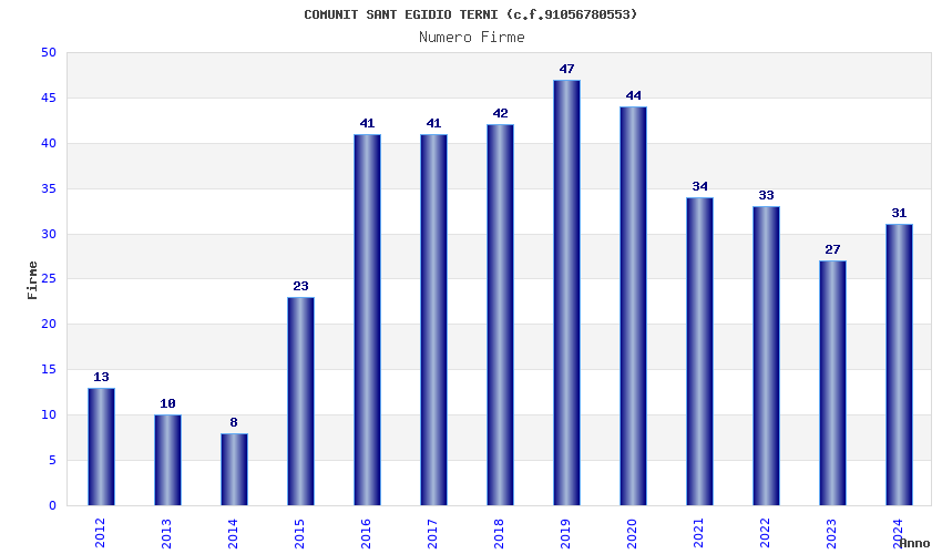 Anno Firme Importi Media Naz. Reg. Prov. Comu.