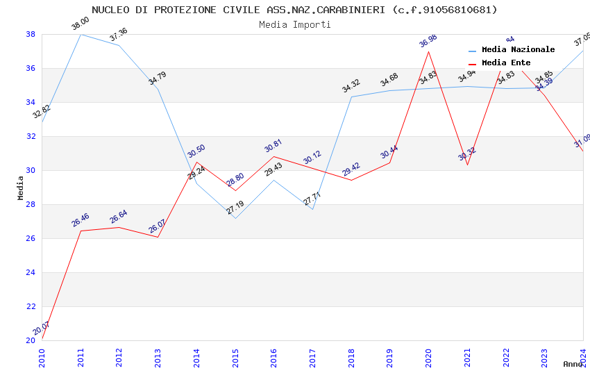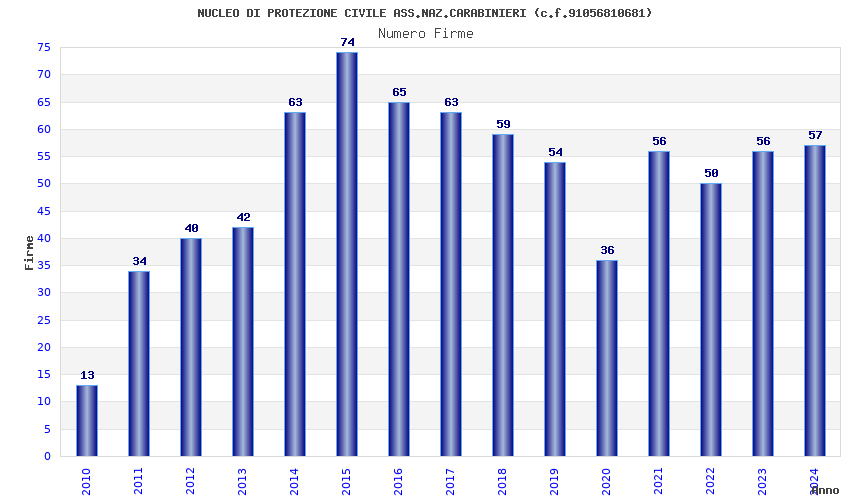 | Anno | Firme | Importi | Media | Naz. | Reg. | Prov. | Comu. |