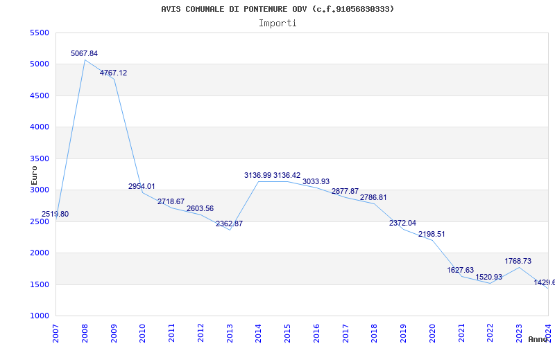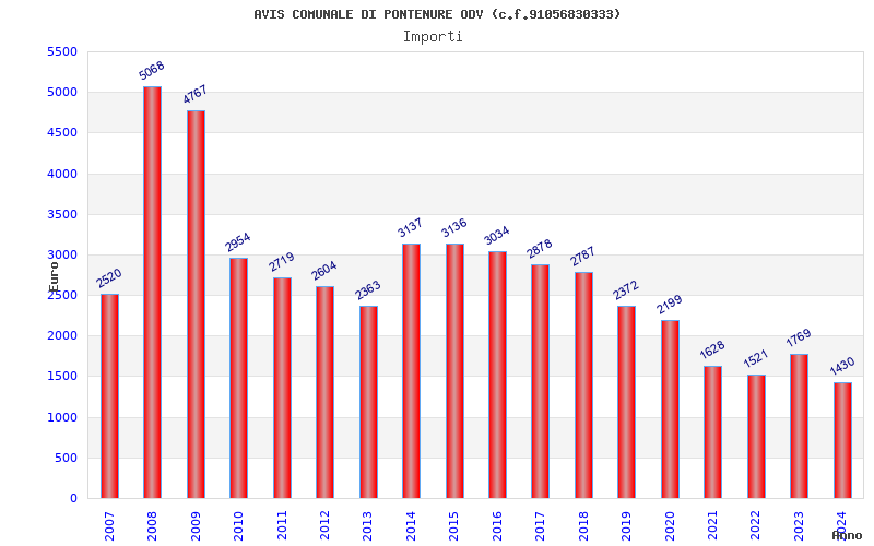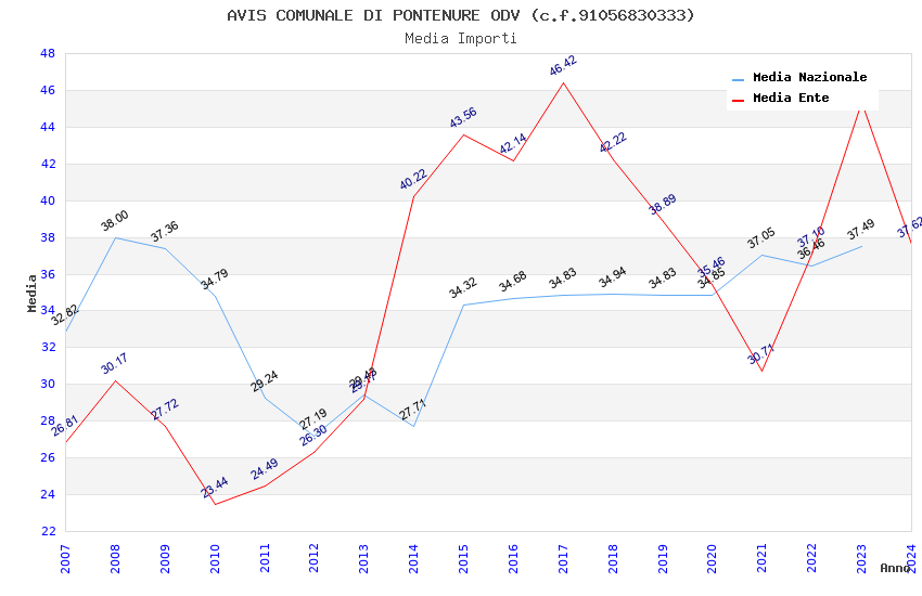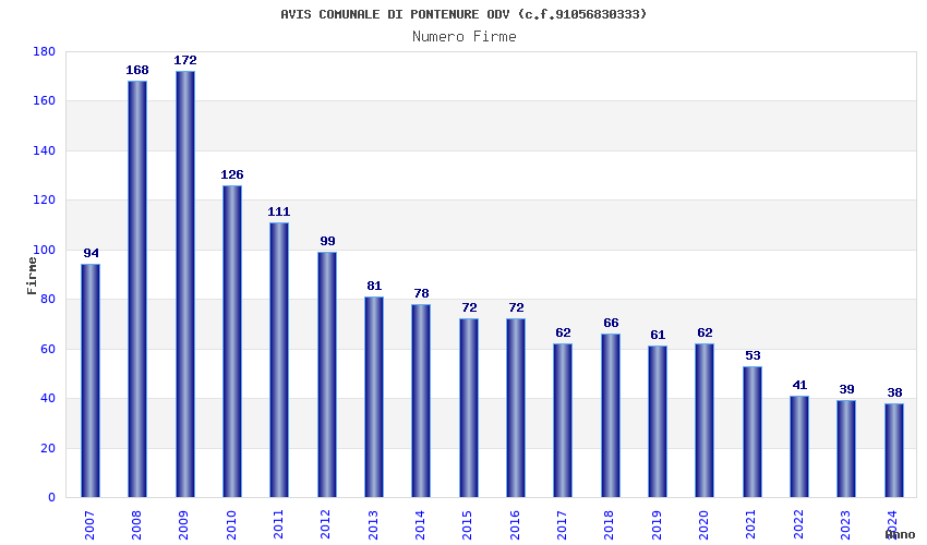 | Anno | Firme | Importi | Media | Naz. | Reg. | Prov. | Comu. |