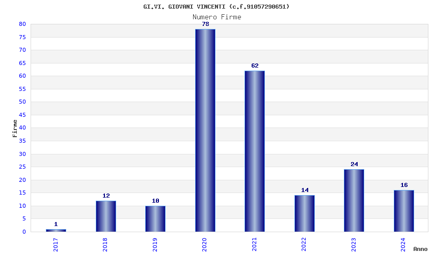 | Anno | Firme | Importi | Media | Naz. | Reg. | Prov. | Comu. |