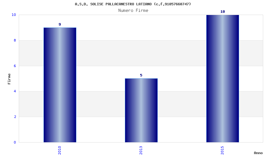 | Anno | Firme | Importi | Media | Naz. | Reg. | Prov. | Comu. |