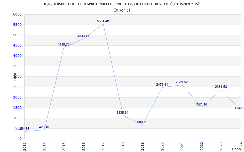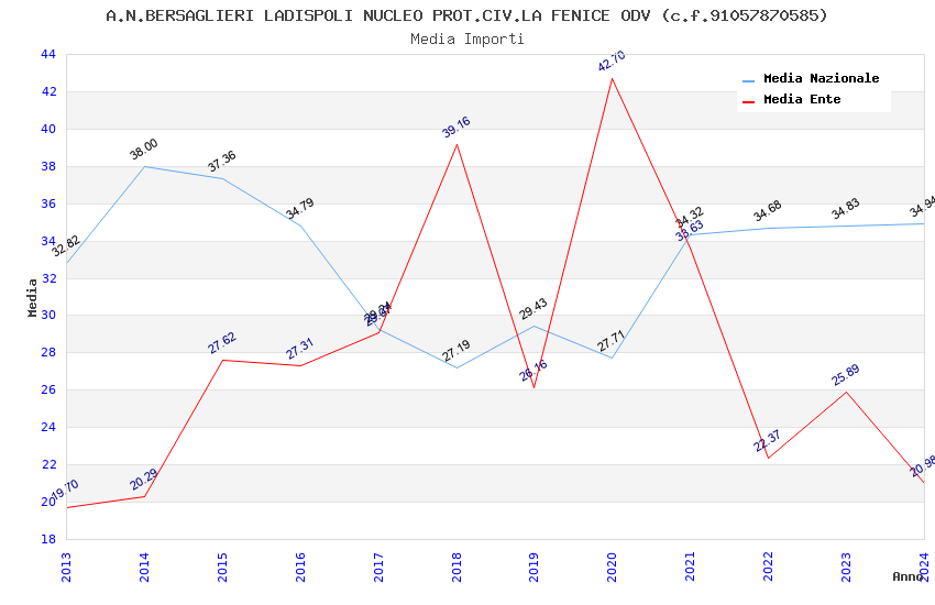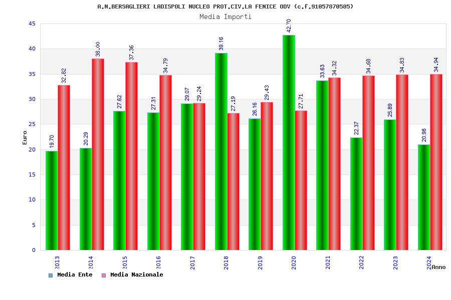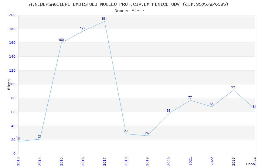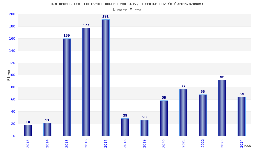 | Anno | Firme | Importi | Media | Naz. | Reg. | Prov. | Comu. |