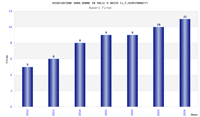 | Anno | Firme | Importi | Media | Naz. | Reg. | Prov. | Comu. |