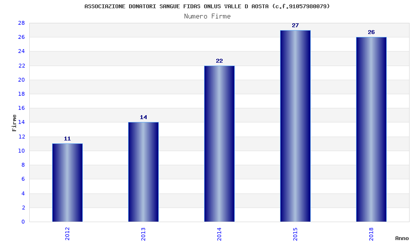 | Anno | Firme | Importi | Media | Naz. | Reg. | Prov. | Comu. |