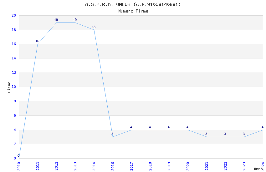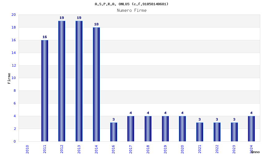 | Anno | Firme | Importi | Media | Naz. | Reg. | Prov. | Comu. |
