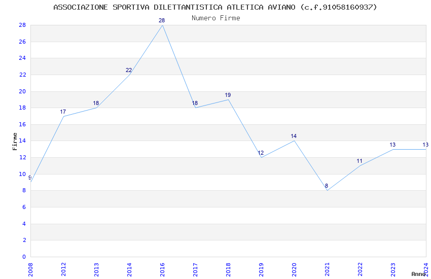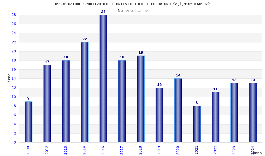 | Anno | Firme | Importi | Media | Naz. | Reg. | Prov. | Comu. |