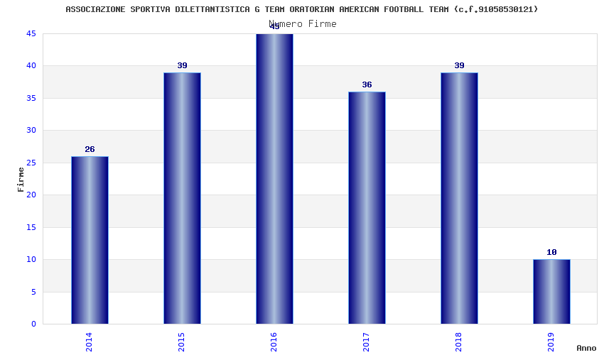 | Anno | Firme | Importi | Media | Naz. | Reg. | Prov. | Comu. |
