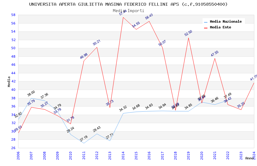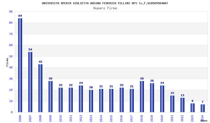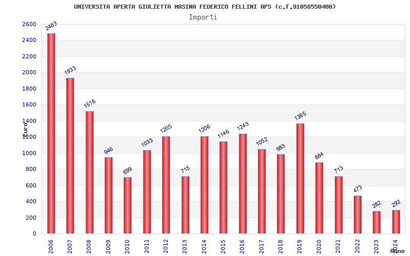 | Anno | Firme | Importi | Media | Naz. | Reg. | Prov. | Comu. |