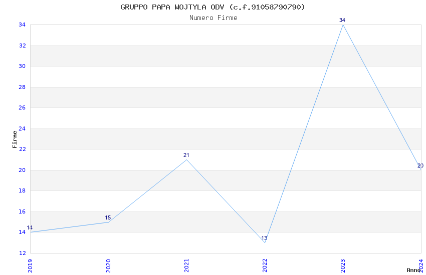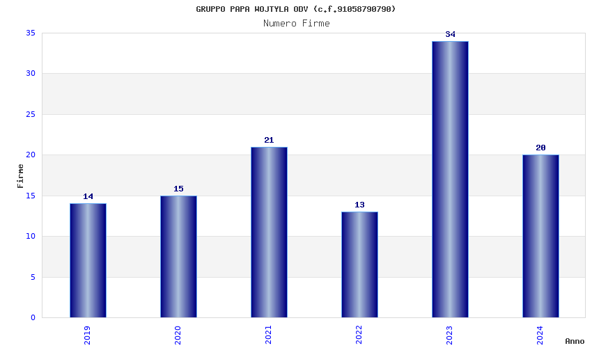 | Anno | Firme | Importi | Media | Naz. | Reg. | Prov. | Comu. |