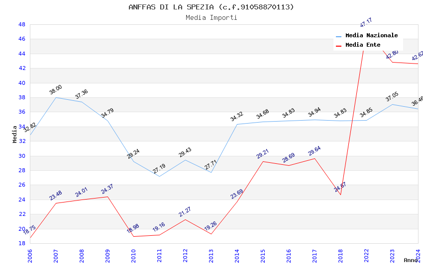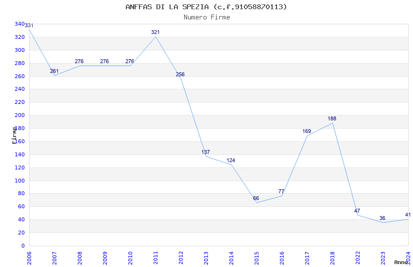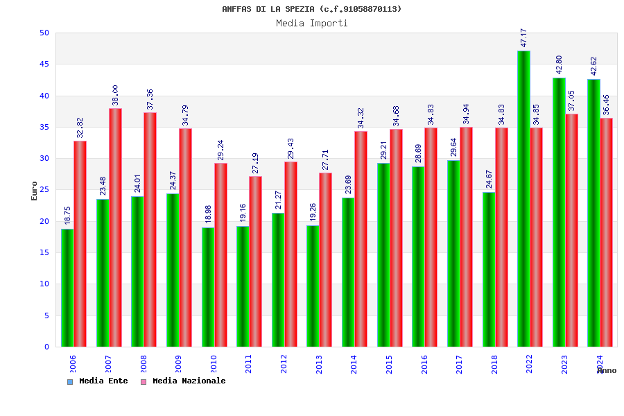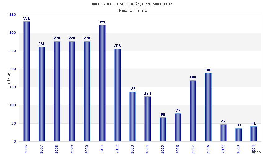 | Anno | Firme | Importi | Media | Naz. | Reg. | Prov. | Comu. |
