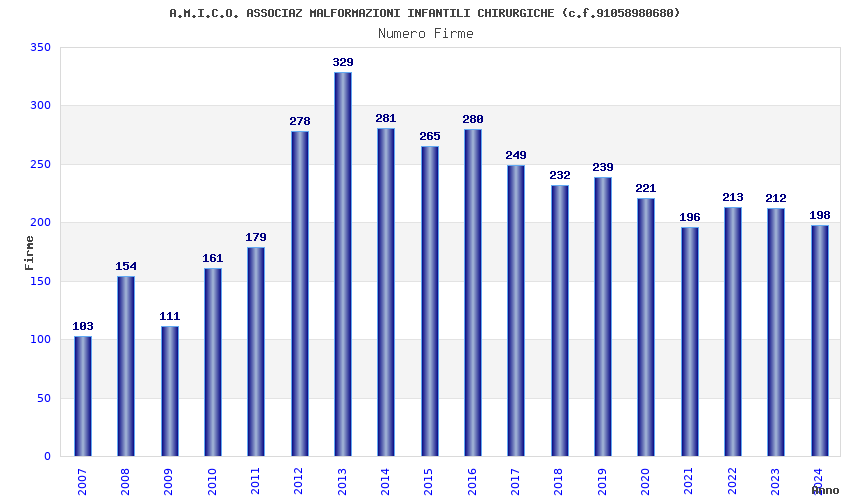 | Anno | Firme | Importi | Media | Naz. | Reg. | Prov. | Comu. |