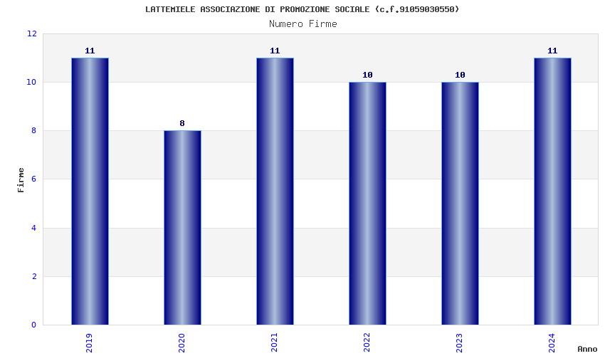 | Anno | Firme | Importi | Media | Naz. | Reg. | Prov. | Comu. |